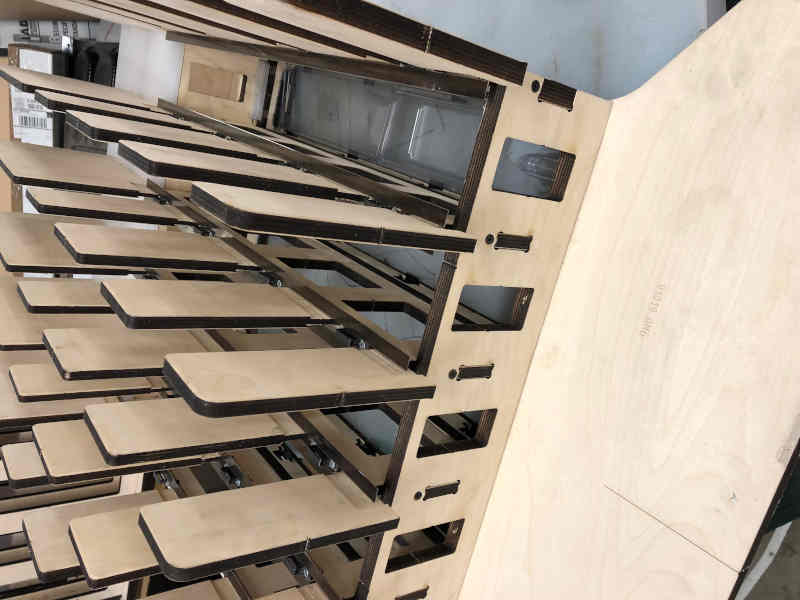 Sharples can provide fully assembled stackers or components for Thermoformers. When manufacturing a stacker, Sharples takes into consideration the geometry of the finished piece and the overall layout. A stacker can be created with as little as a mold file and/or molded sheet. All parts are laser-cut, milled or waterjet cut depending on the material and the application. Sharples offers the ability to create stackers with an array of materials including aluminum, steel, wood and some plastics. In recent years Sharples has developed and manufactured components to work with robotic stackers such as End of Arm Tooling. We work closely with mold makers and industry leading Thermoform Machine Manufactures to understand our customers specifications and requirements.